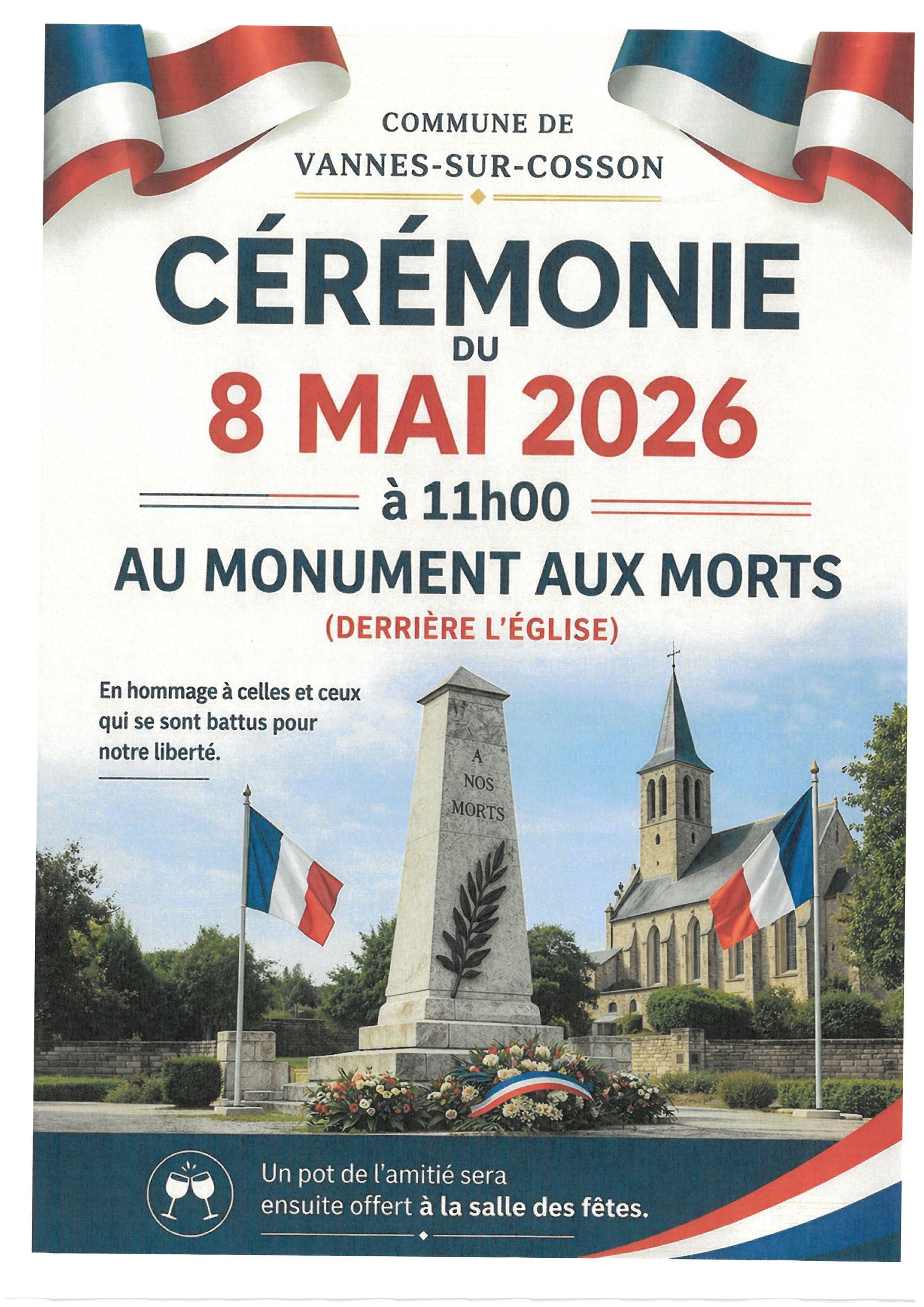 Un dépôt de gerbe sera ensuite offert à la salle des fêtes.