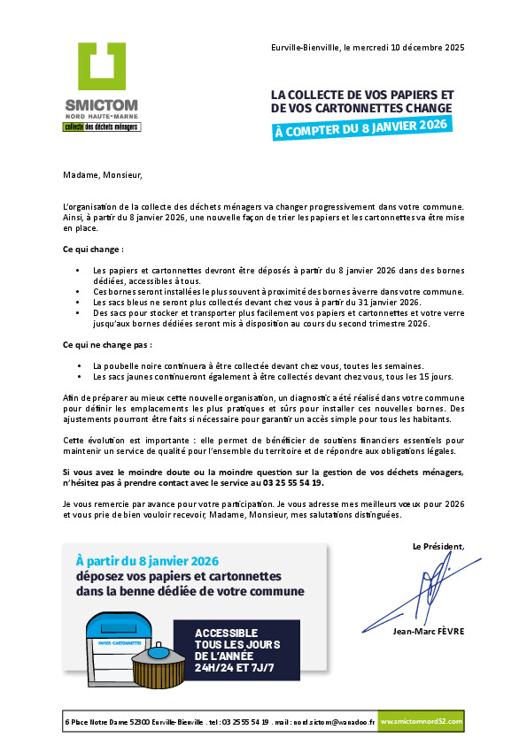 Pour les hameaux et partie de villages collectés habituellement le jeudi matin, donc dépôt devant chez vous le mercredi soir,