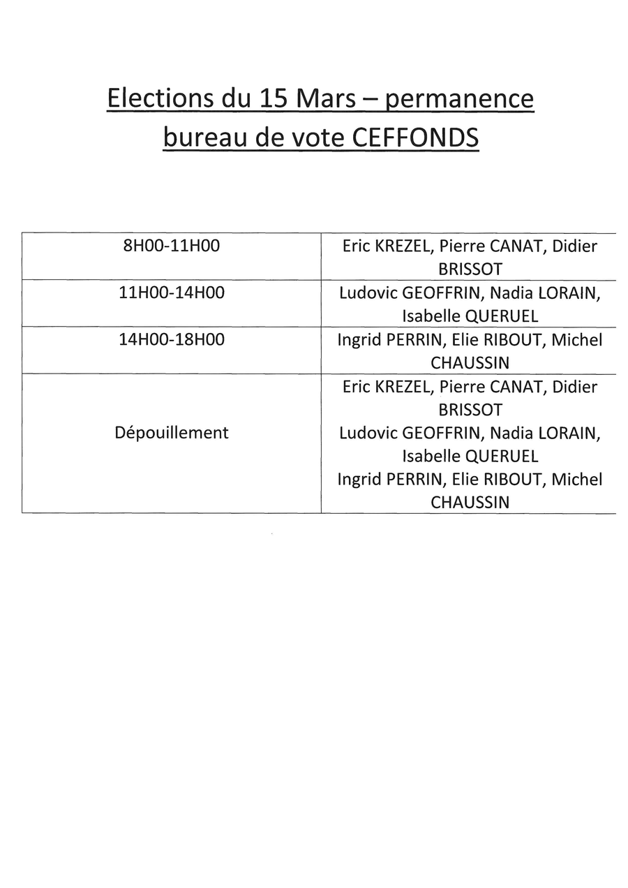 Madame CAZIN interviendra sur le reste de la commune de CEFFONDS.