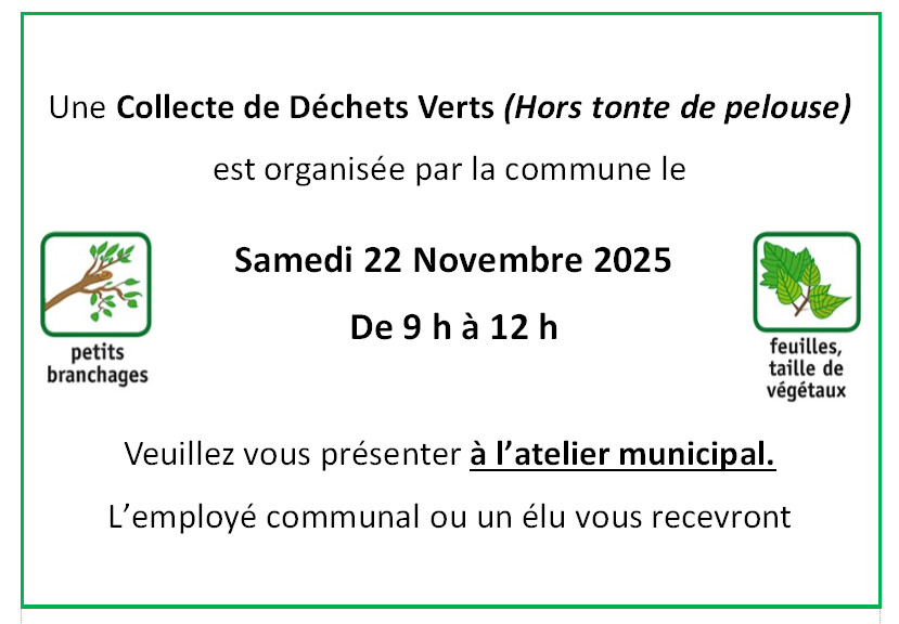 Pour infos : Une collecte de Déchets Verts (Hors tonte de pelouse),
