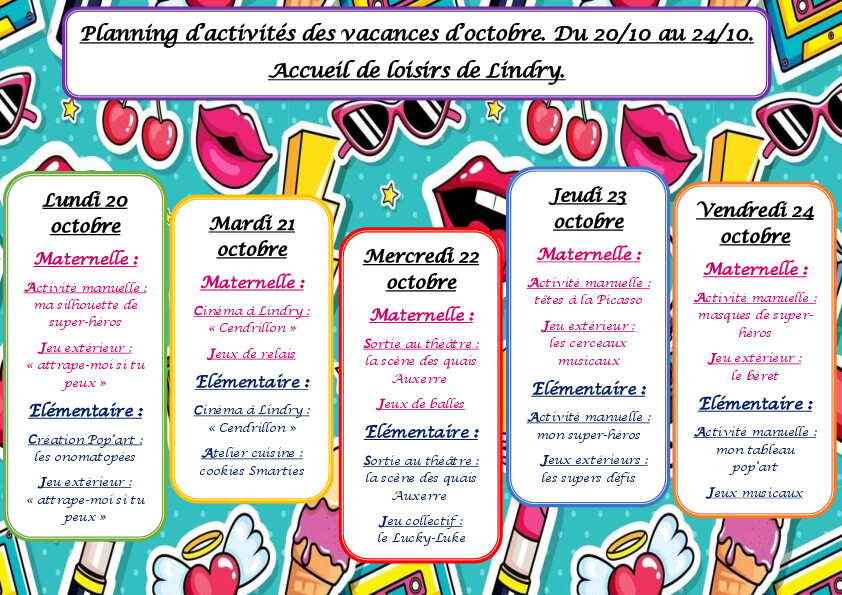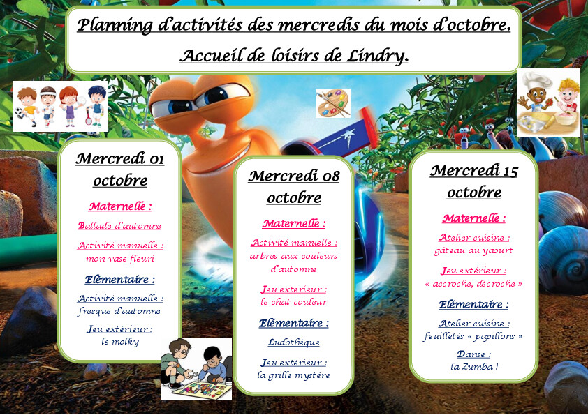 Voici le programme des vacances du centre de loisirs pour les vacances d'octobre