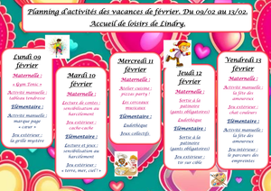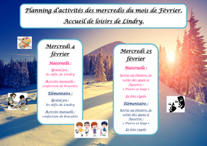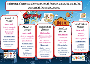Voici le programme du centre de loisirs pour les vacances de février.