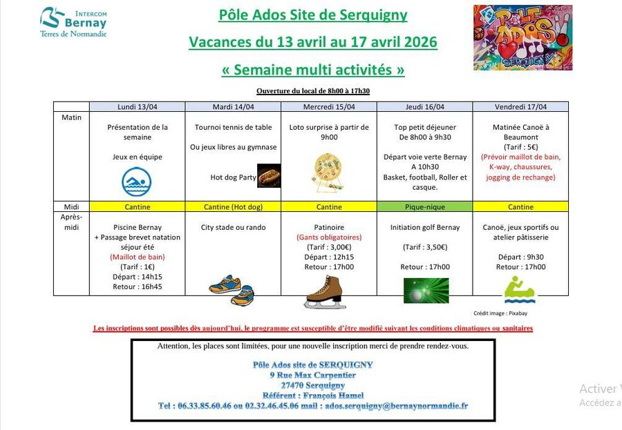 Planning du Pôle Ados des vacances d’Avril