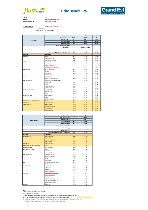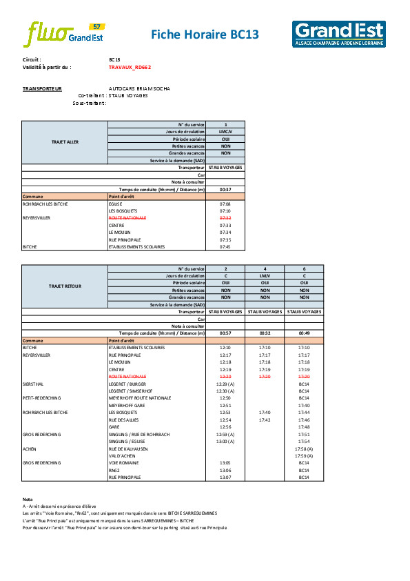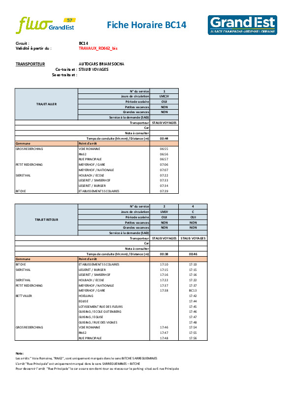 - Fiche horaire modifiés du circuit BC14, BC08 et BC13