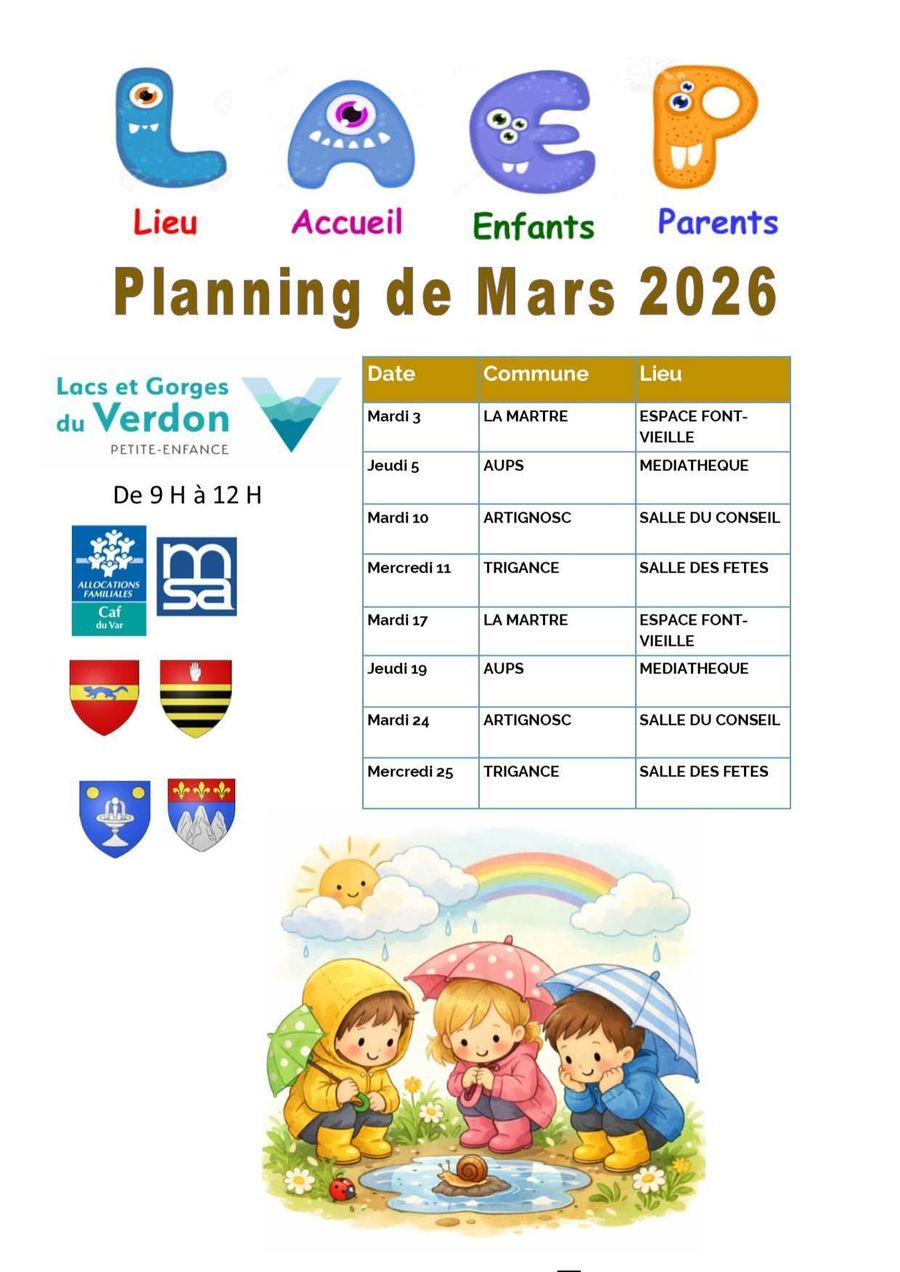 Voici le calendrier des permanences LAEP du mois de mars