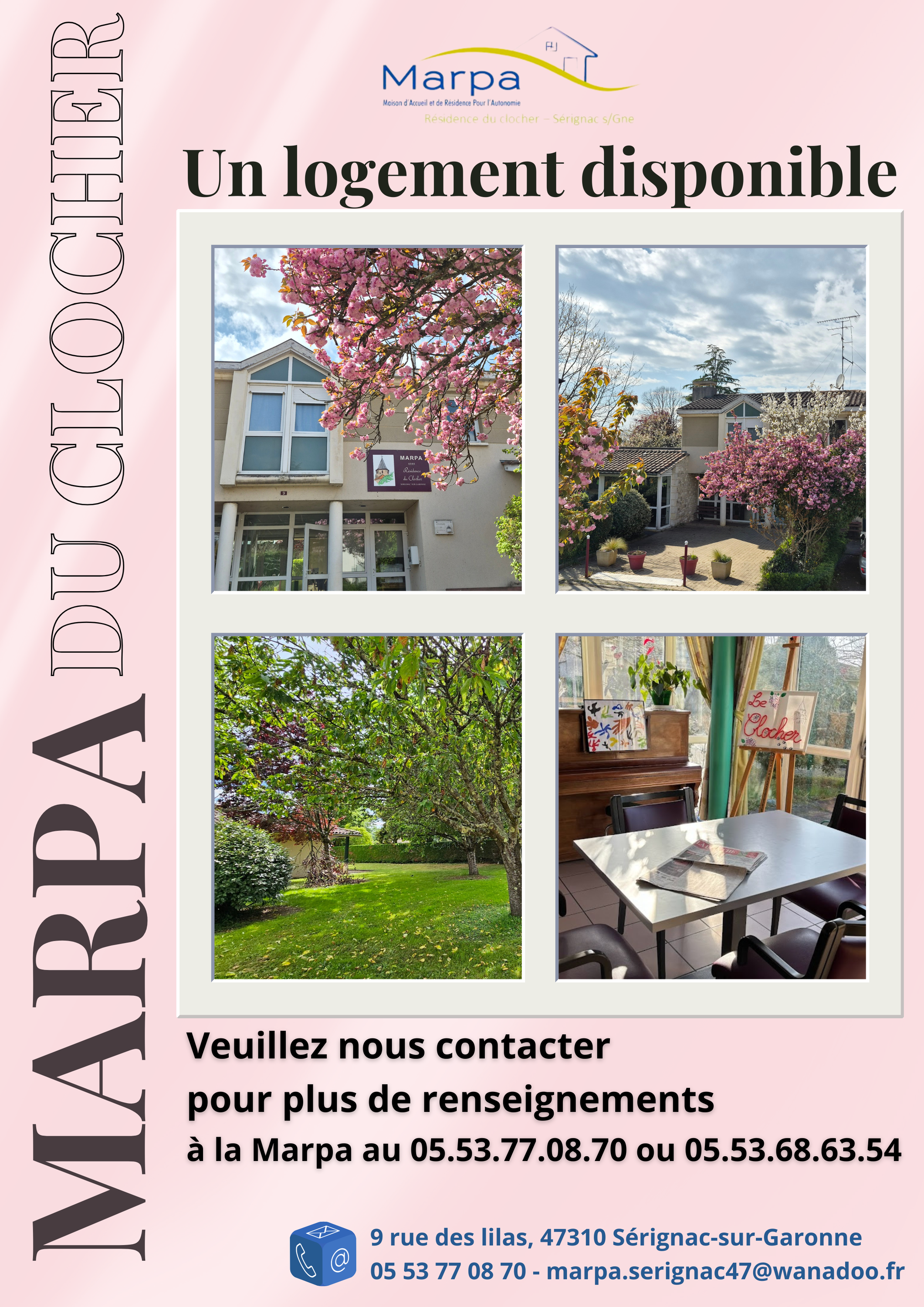 Vous cherchez un cadre de vie paisible et convivial à Sérignac-sur-Garonne ? La Résidence du Clocher a actuellement un logement disponible.