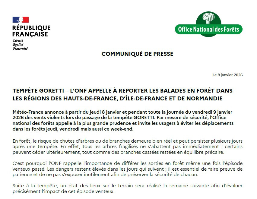 • prenez garde aux chutes d’arbres (les sols étant très humides) et d’objets, ne vous promenez pas en forêt ;