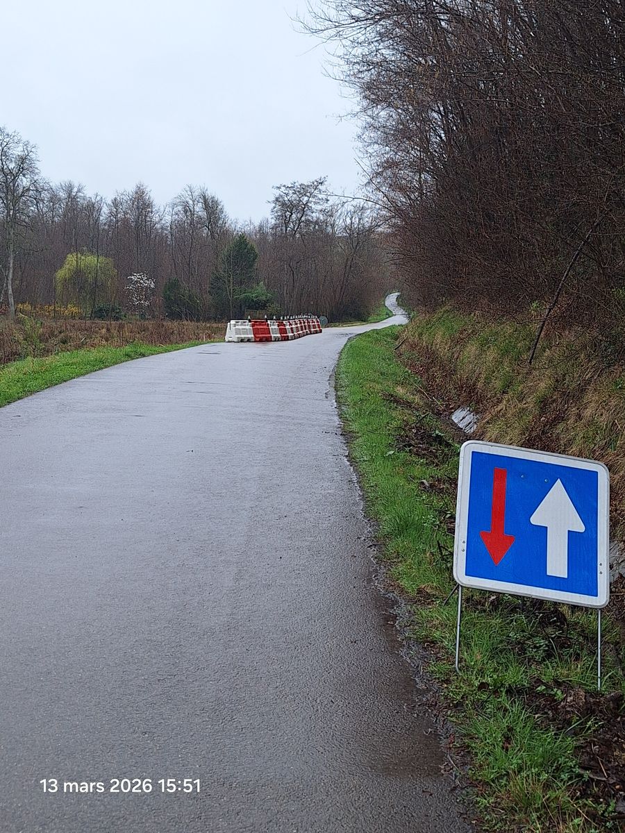 Circulation alternée suite mise en place signalisation sur emplacement routier effondré.