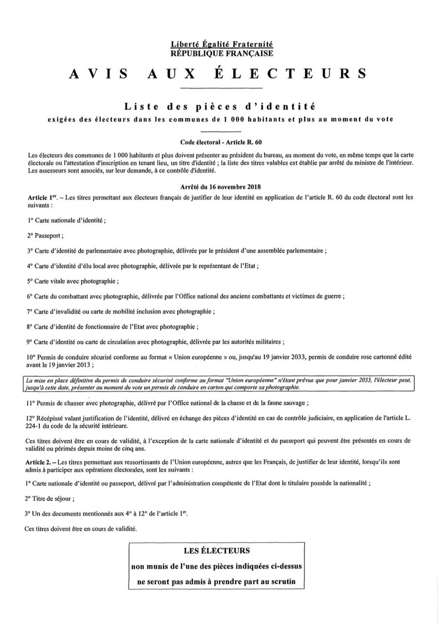 ✅ N’oubliez pas de vous munir d’un justificatif d’identité et, si possible, de votre carte électorale.
