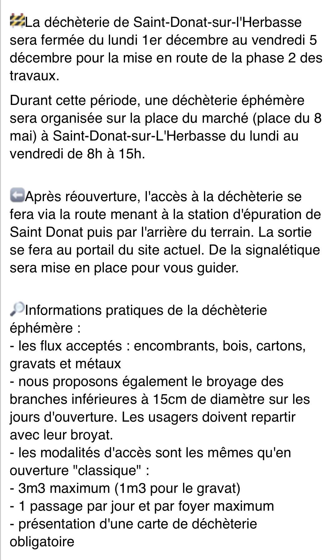 - L'accès sera limité à 1 passage par jour et à 3m³ de dépôts (présentation de la carte d'accès obligatoire)