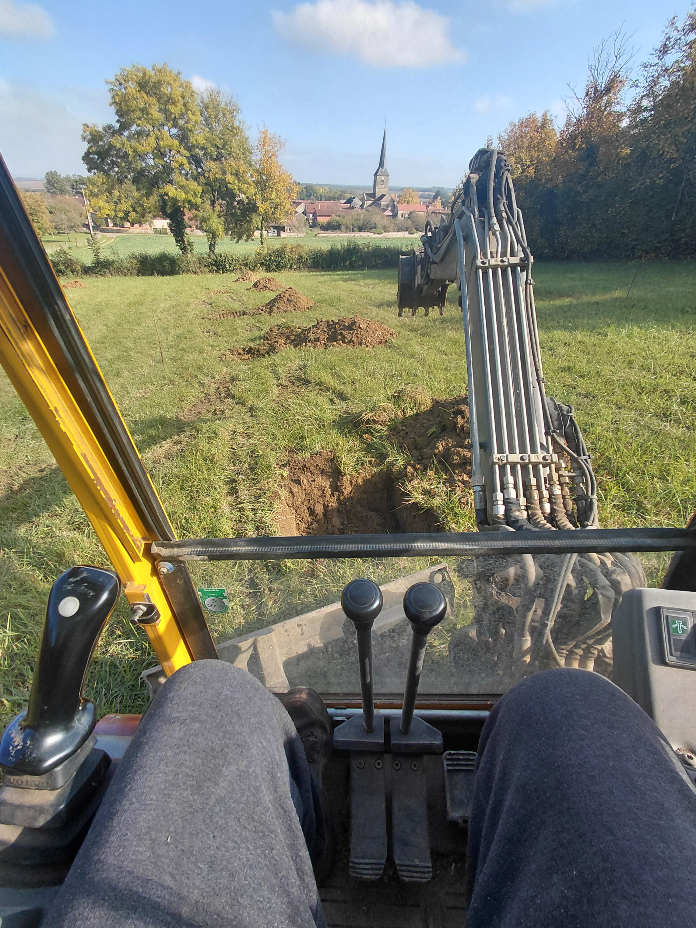 Préparation des trous pour planter les pommiers dans le pré du loup