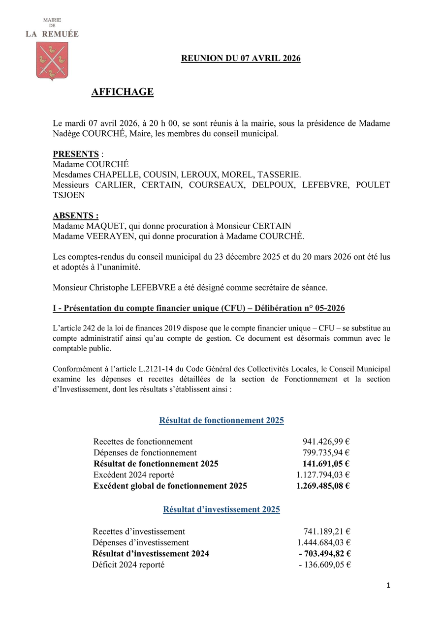 Veuillez trouver joint le compte rendu du dernier conseil municipal.