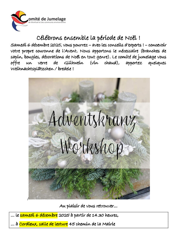 Lancez-vous et apportez quelques échantillons que à déguster ensemble. Le Comité de jumelage fournit vin chaud et boissons autres.