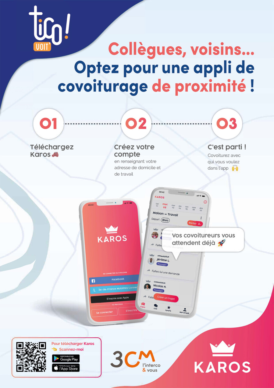 une solution de covoiturage subventionné via l'application Karos, pensée pour les habitants et salariés du territoire.