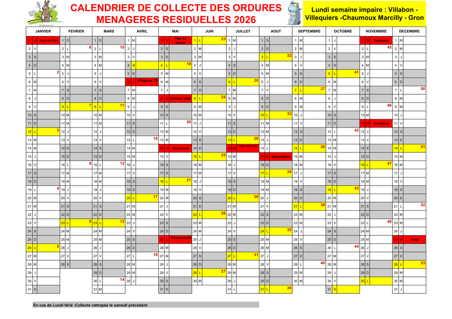 Les ordures ménagères et poubelles jaunes seront ramassées