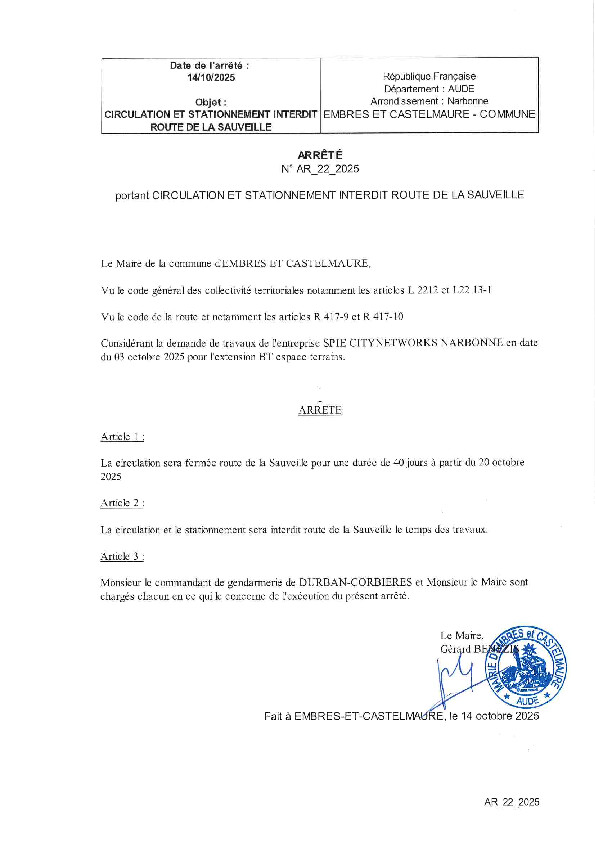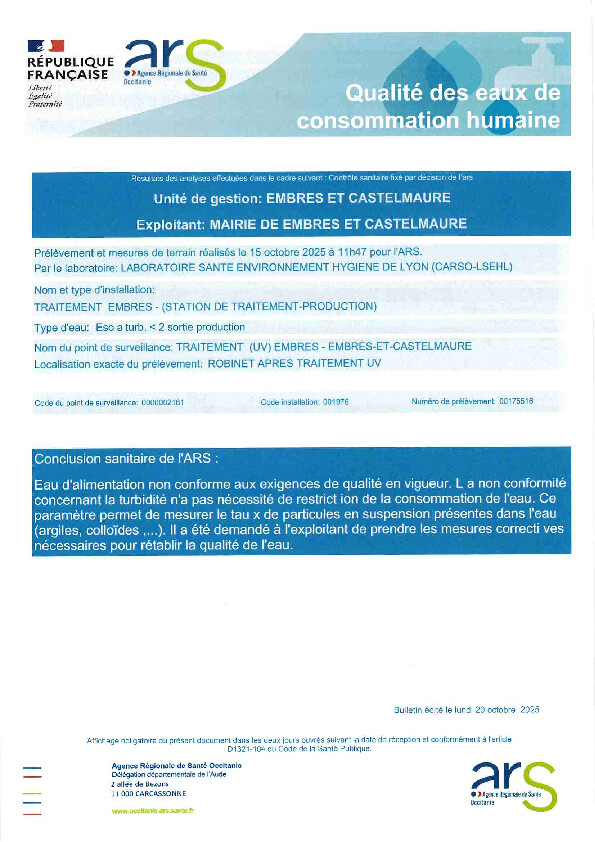 L'agence postale d'Embres et Castelmaure sera fermée du lundi 27 octobre 2025 au mercredi 19 novembre inclus.