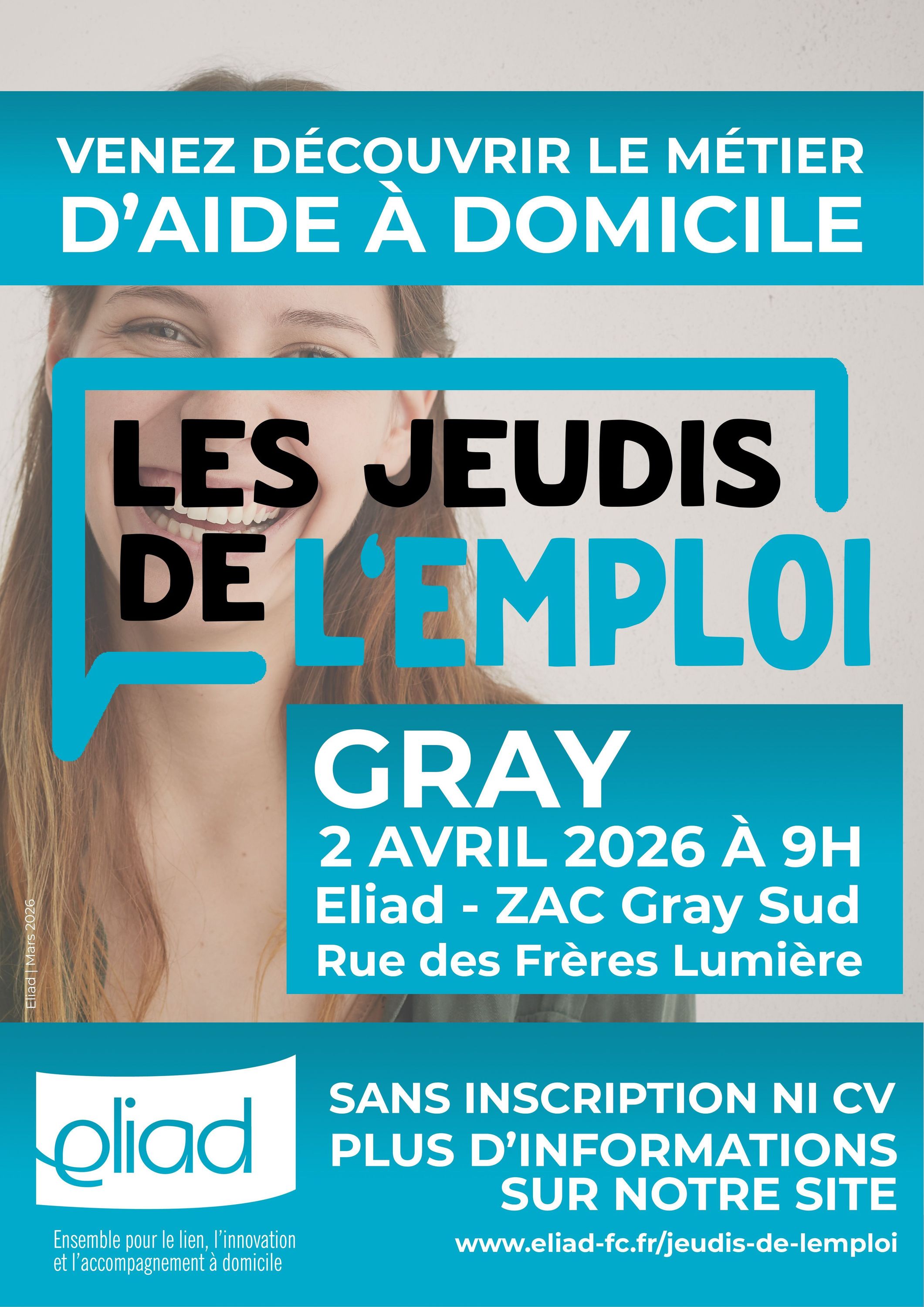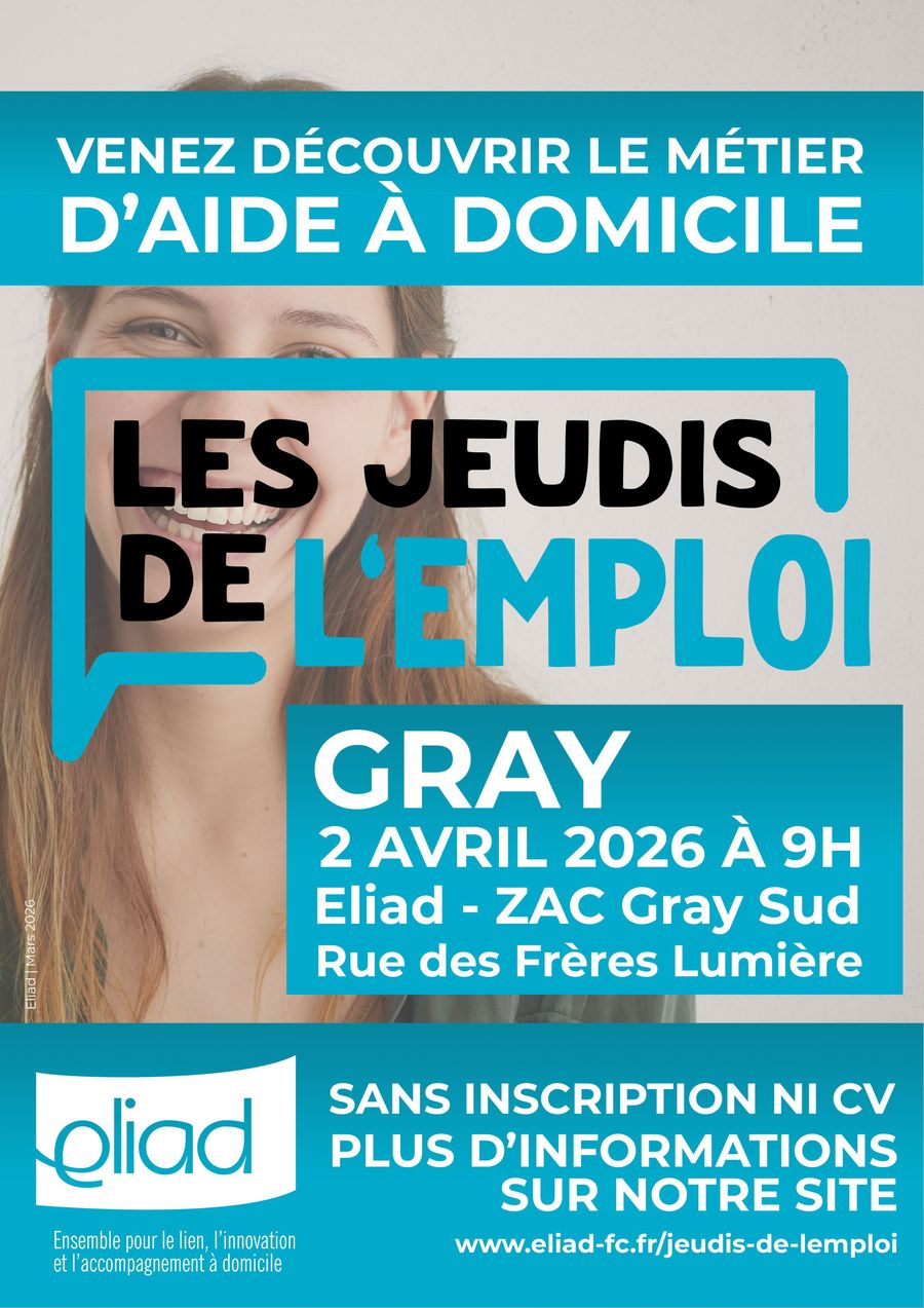 Eliad organise « LES JEUDIS DE L'EMPLOI », des rencontres conviviales pour faire découvrir le métier d’aide à domicile et les opportunités d'emplois sur le secteur de Gray et ses alentours.