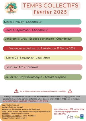 Les temps collectifs sont à destination des enfants non scolarisés accompagnés de leurs assistants maternels, parents et famille.