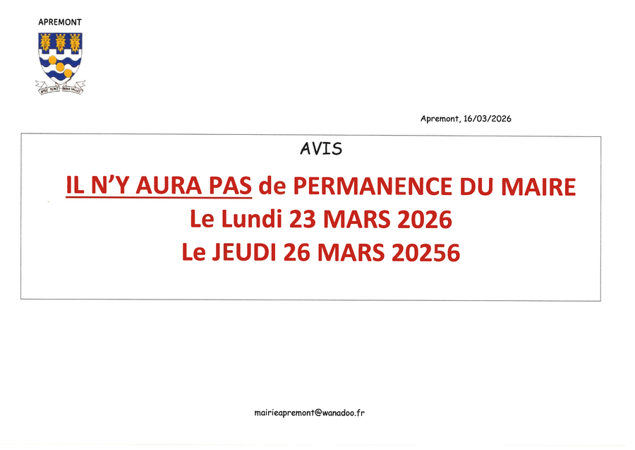 Ou un courriel à l’adresse suivante : mairieapremont@wanadoo.fr