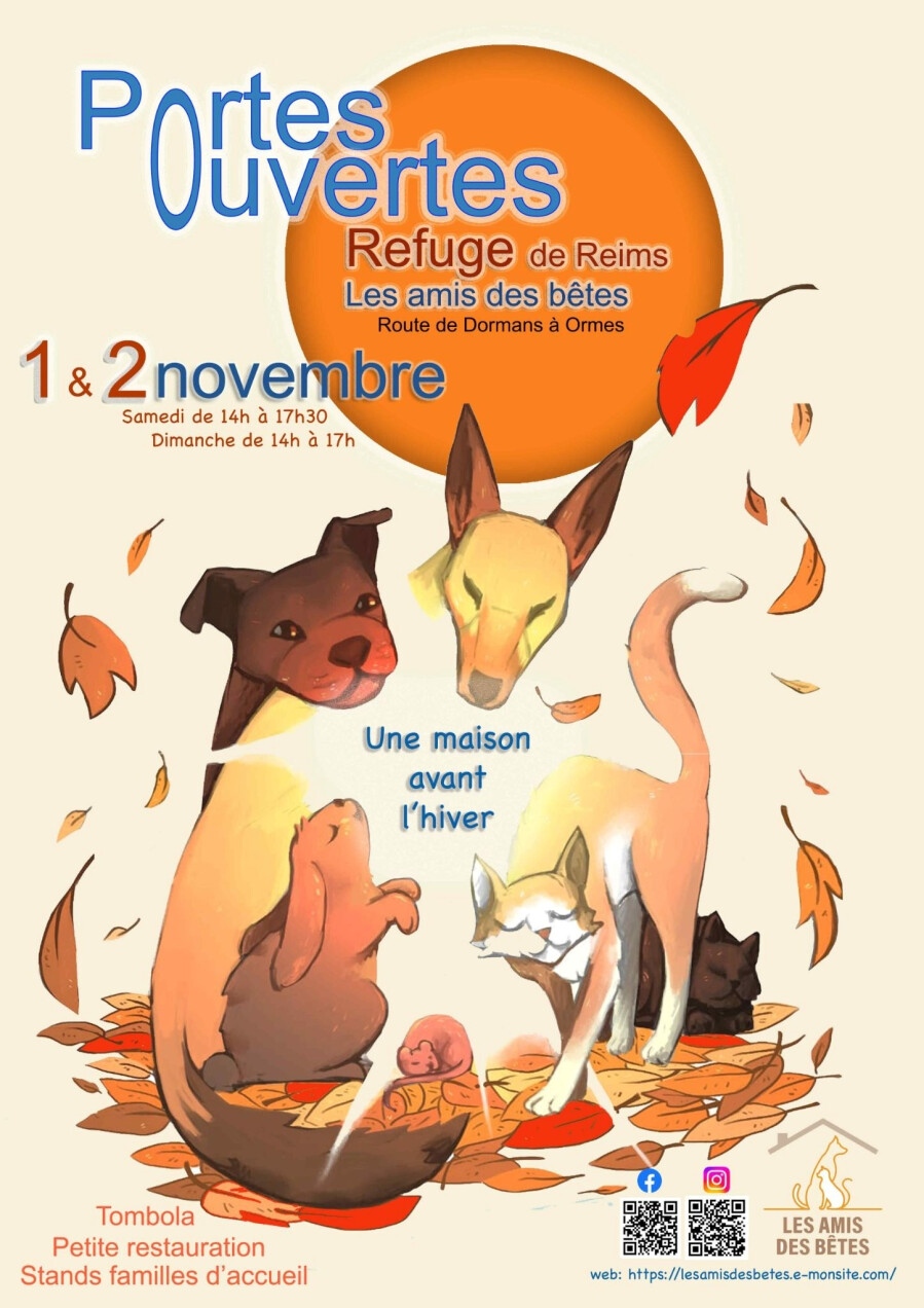 Le Conseil d'Administration, le bureau, la présidente de l'Association Les Amis des Bêtes, le directeur et l’ensemble des salariés ont l'honneur de vous convier aux Journées Portes Ouvertes du Refuge du Grand Reims.