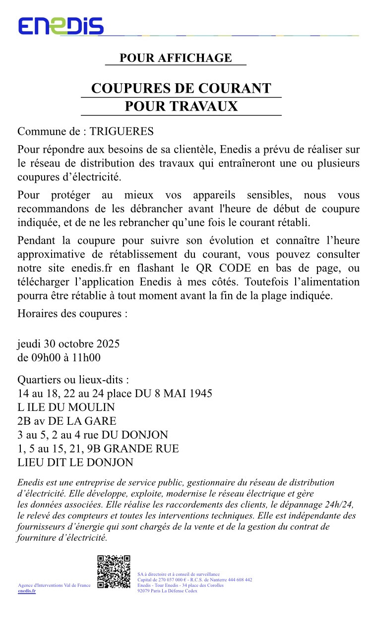 sur le réseau électrique qui vous alimente qui entraineront une ou plusieurs coupures d'électricité.