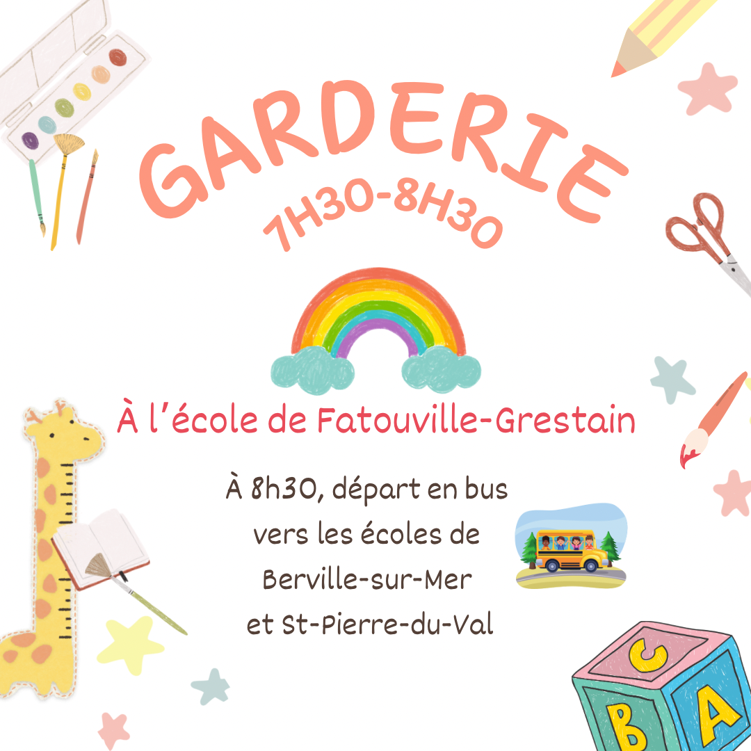 🚌 À 8h30, possibilité de prendre le bus pour aller à l’école de Berville-sur-Mer et/ou de St-Pierre-du-Val