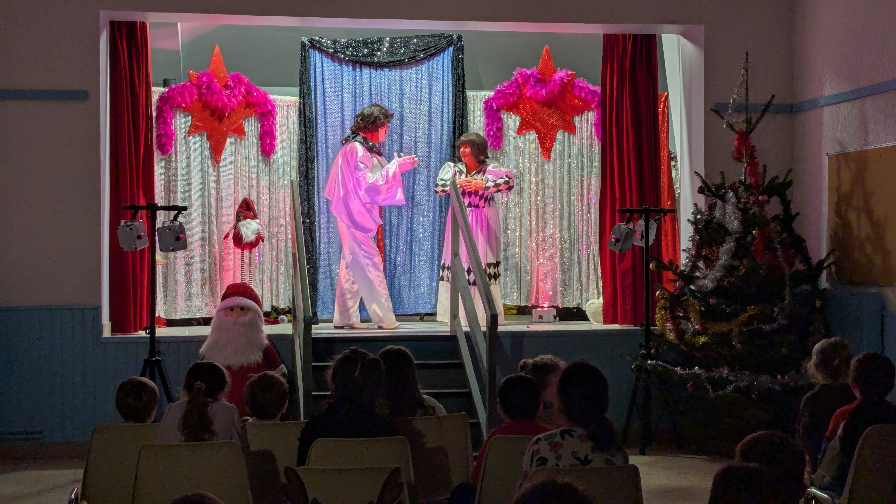 Et pour couronner le tout… le Père Noël en personne est arrivé à la fin du spectacle pour distribuer des cadeaux et des papillotes, sous les yeux émerveillés des enfants.