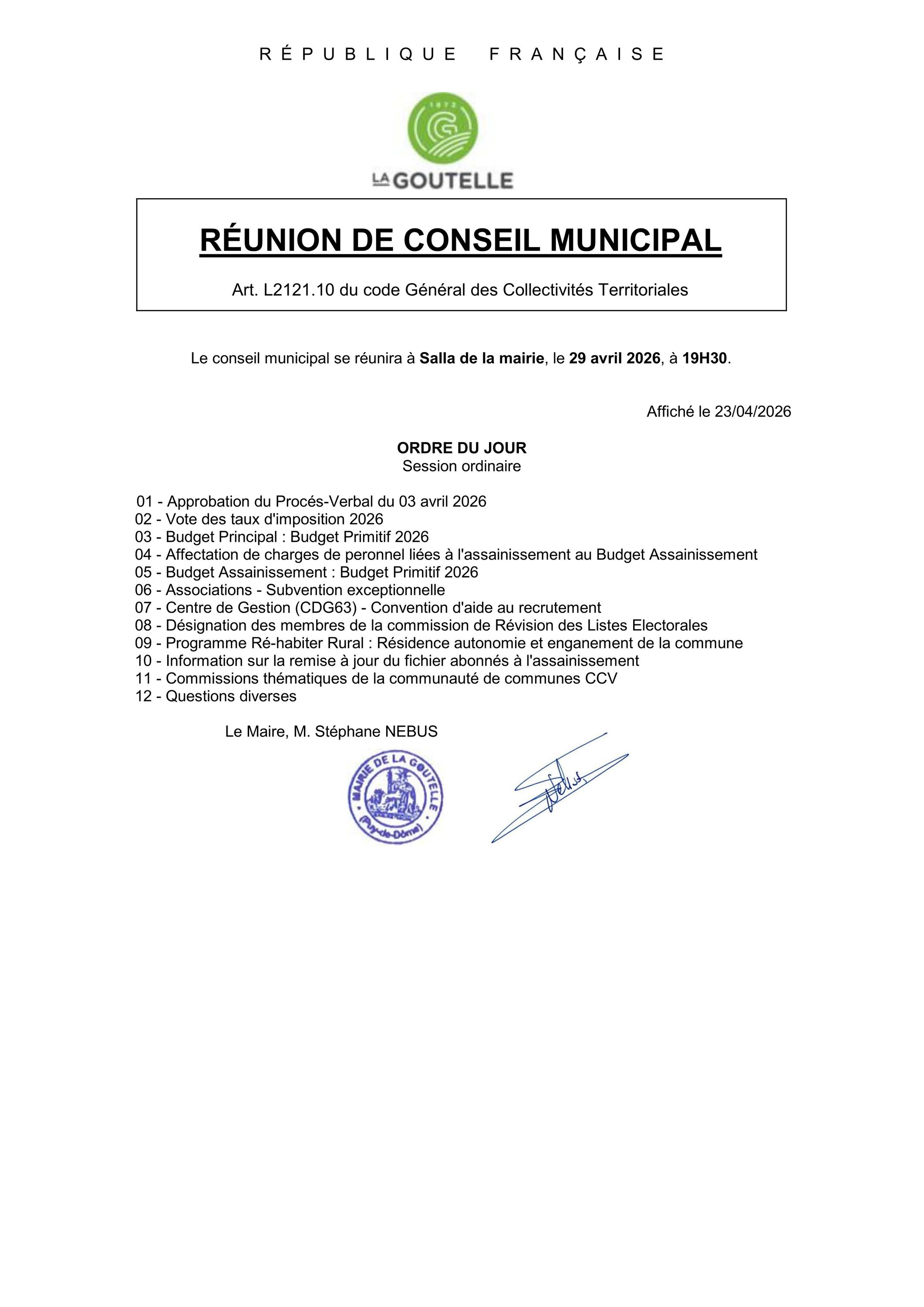 Ces documents seront consultables du 15 avril 2026 au 15 mai 2026.