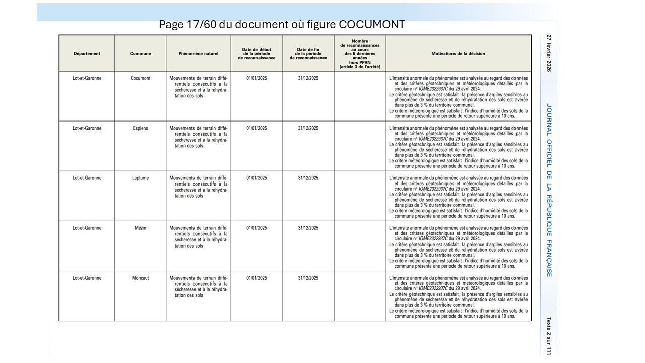 Selon la rĂ©ponse ci-dessous, pas de reconnaissance pour la tempĂȘte Nils pour Cocumont.
