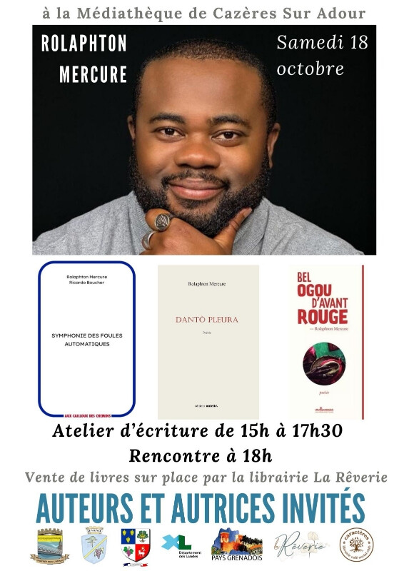 Rolaphton Mercure donnera un atelier d'écriture de 15h à 17h30 ouvert aux adultes comme aux adolescents.
