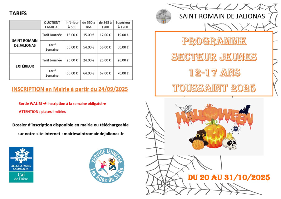 La commune de SAINT ROMAIN DE JALIONAS ouvre son accueil de loisirs sans hébergement Secteur Jeunes 12-17 ans pendant les vacances d'automne pour ses habitants et habitants extérieurs.