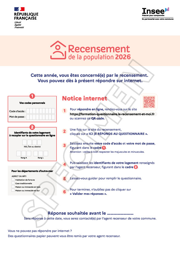 Les codes Internet pour faire le recensement en ligne ont été déposés dans votre boîte aux lettres jeudi sous enveloppe de la mairie.