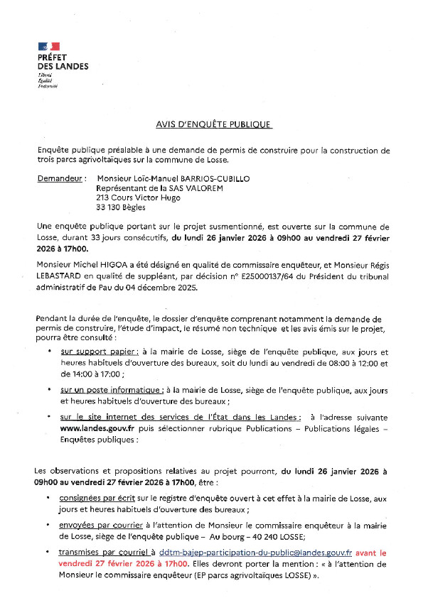 Le samedi 24 janvier à Losse,