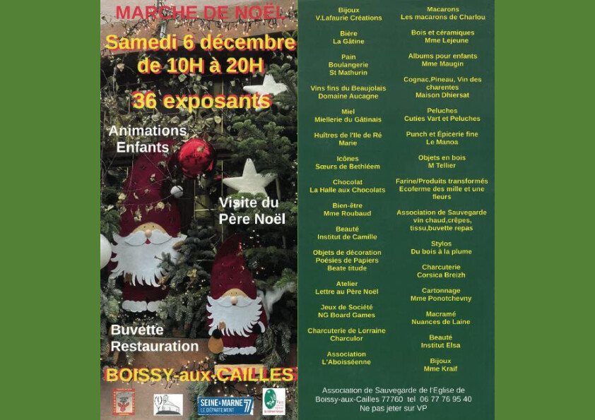 Marché de Noël organisé par l’Association de Sauvegarde de l’Eglise de Boissy-aux-Cailles, au profit de la restauration de celle-ci.