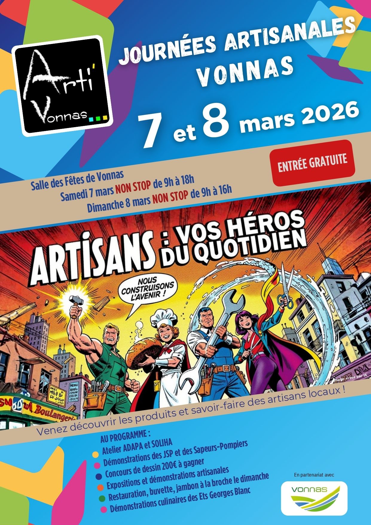 Arti’Vonnas vous attend nombreuses et nombreux les 7 et 8 mars 2026, à la salle des fêtes de Vonnas.