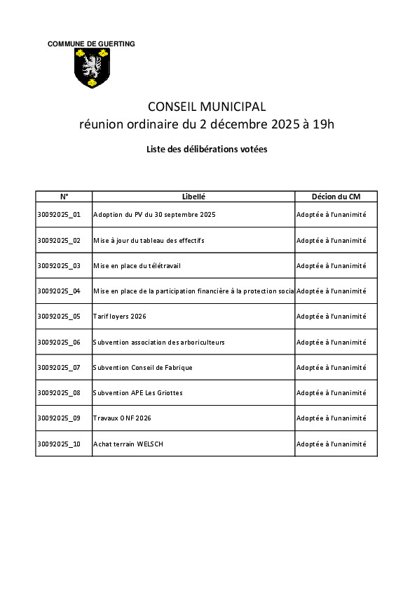 La collecte des ordures ménagères (sacs bleus et verts) de GUERTING, CREUTZWALD (Zone Artisanale, Parc d’Activité Sud, collectifs Maroc/Neuland (VIVEST/MOSELIS) ; Breckelberg, rue Longeville, Rue Bonne Fontaine, Rue Général Hoche, Rue Nassau) est reportée au vendredi 2 janvier 2026.