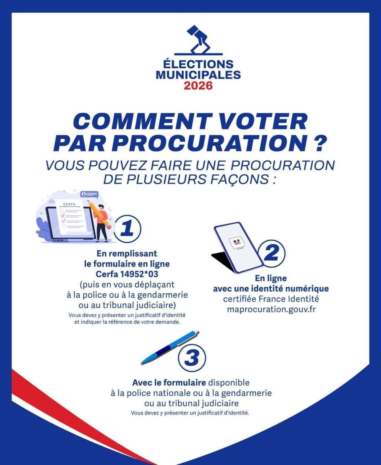 Pour toute information relative au vote par procuration, veuillez consulter le site du ministĂšre de lâIntĂ©rieur ici :