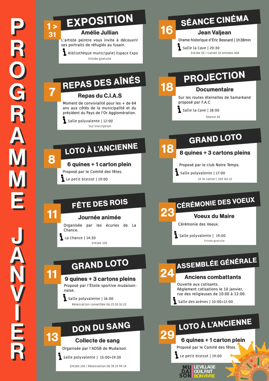 📅 PROGRAMME JANVIER 2026- SORTIR Á MUDAISON