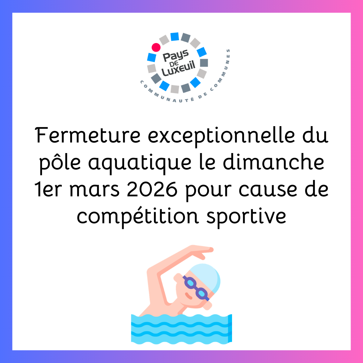 Le pôle aquatique du Pays de Luxeuil accueillera son premier évènement sportif le dimanche 1er mars 2026💦