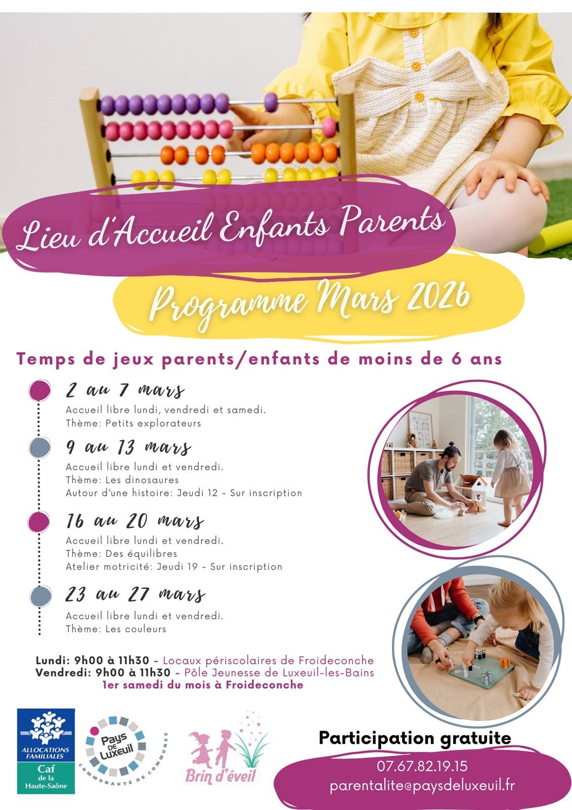Renseignements et inscriptions : parentalite@paysdeluxeuil.fr / 07.67.82.19.15