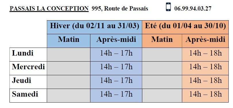 Horaires d'ouvertures au public :