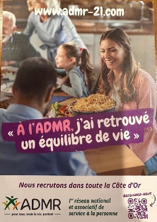 L'ADMR (Aide à domicile en milieu rural) Recrute,