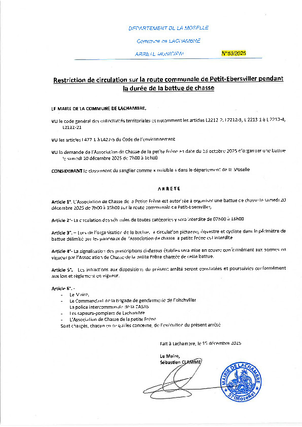 Cette mesure vise à éviter le passage des bus scolaires sur la route reliant le village à Holbach et sera en vigeur du