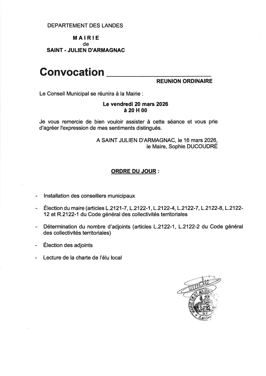 Vendredi 20 mars 2026 à 20h00 à la Mairie.