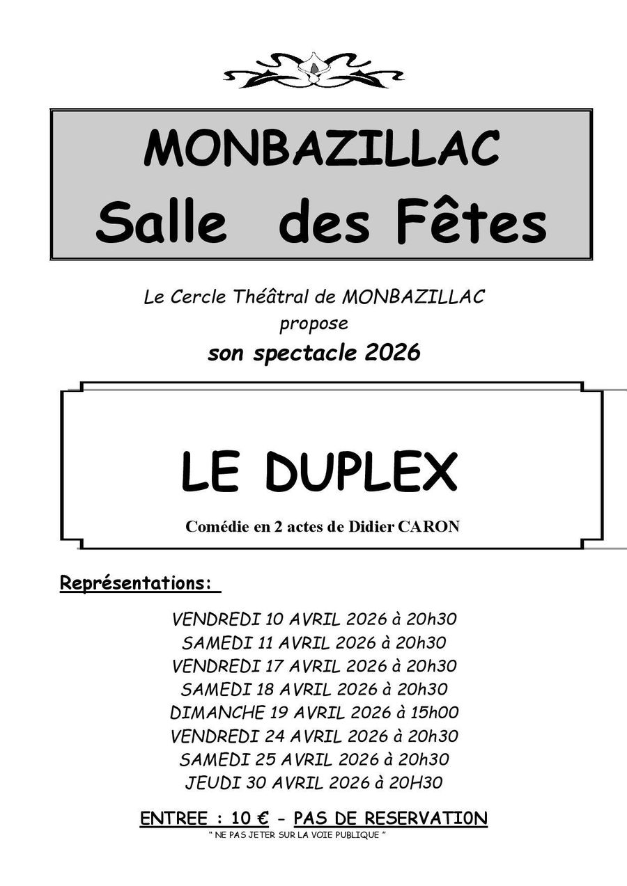 Stéphane GERAUD ( Président du Cercle Théâtral de Monbazillac ) au 06.14.22.15.04,