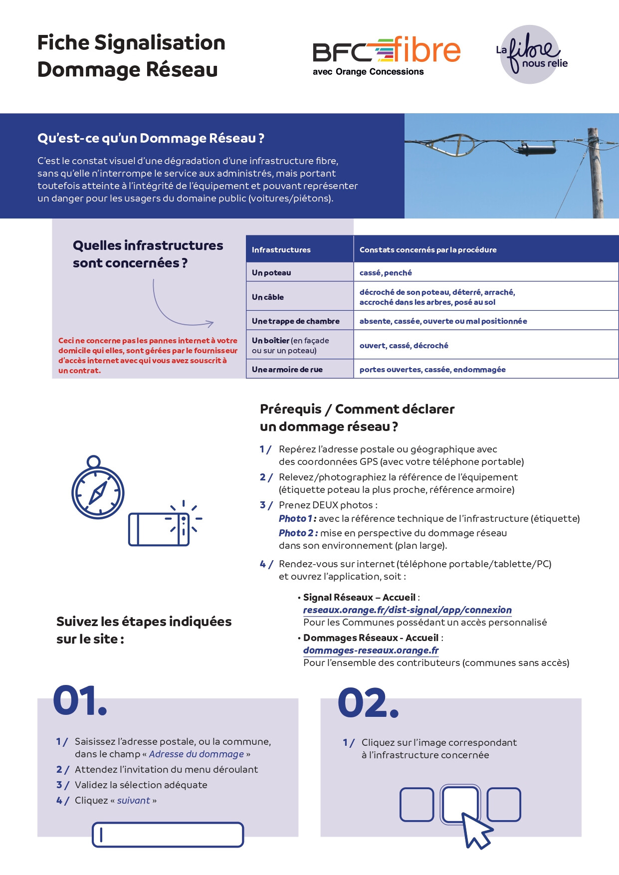 Dans le cadre de la surveillance et du bon entretien des infrastructures fibre sur le domaine public, vous trouverez ci-joint une fiche de signalisation des dommages réseaux.