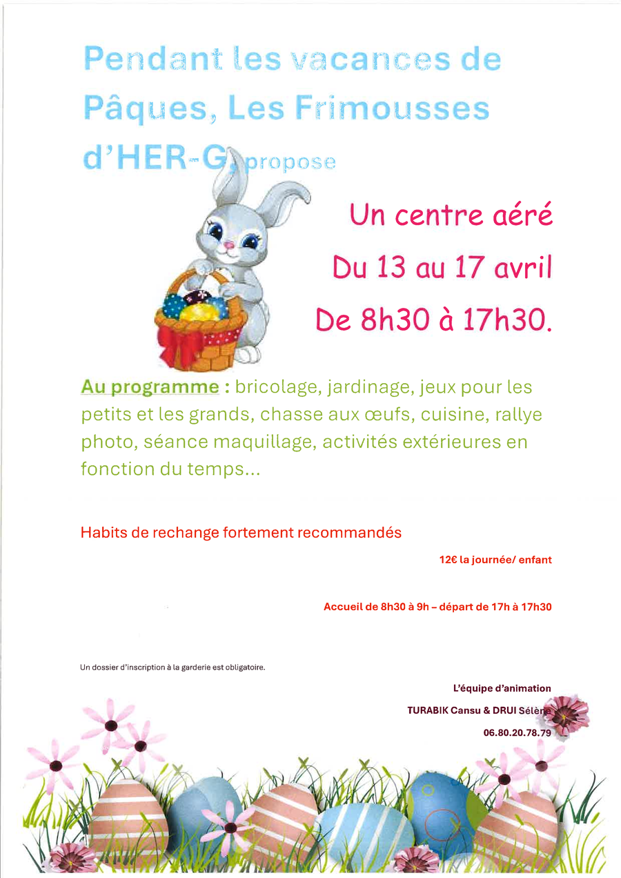La garderie "Les Frimousses d'HER-G" accueille les enfants lors des temps périscolaires: