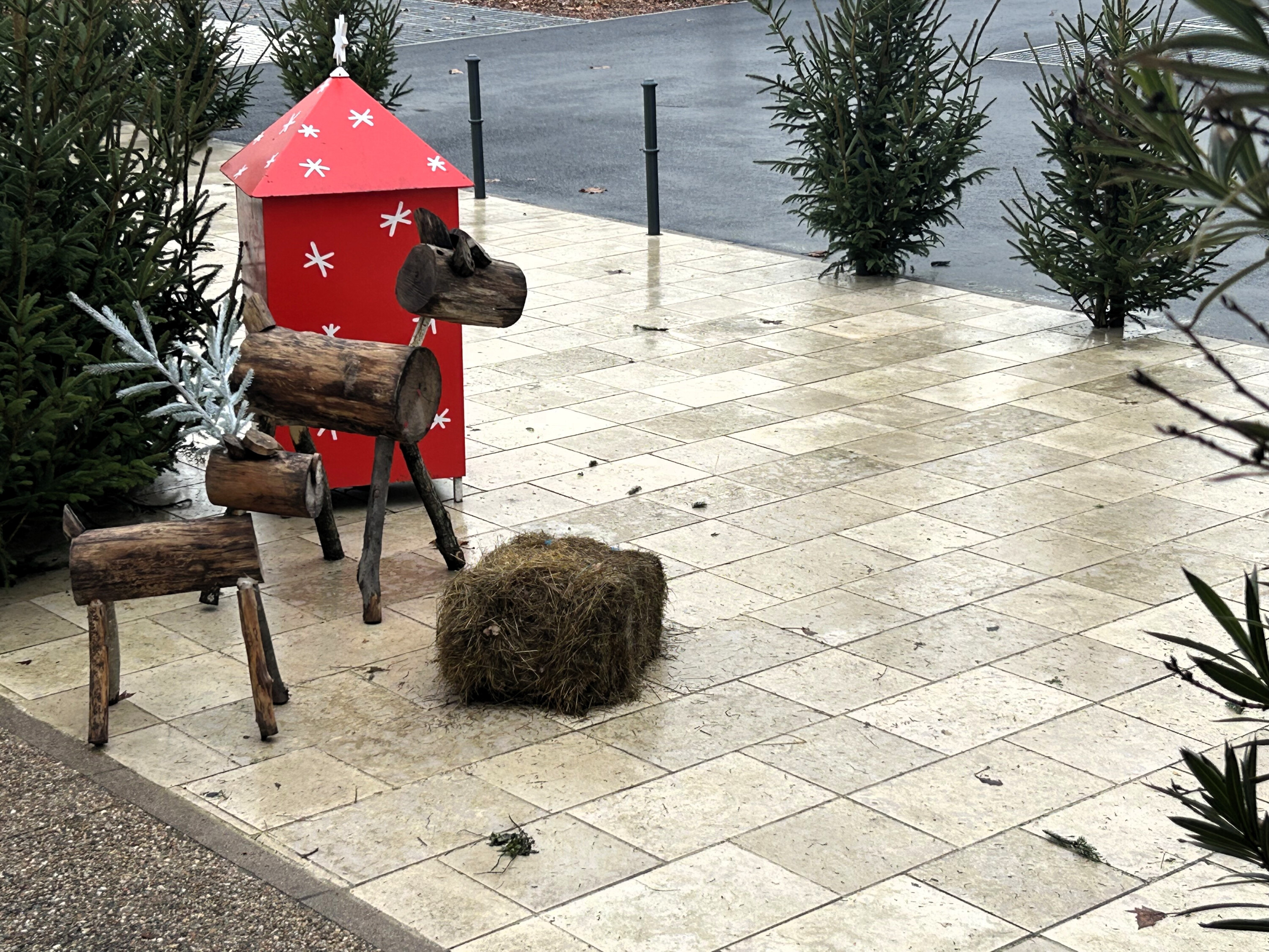L'entrée dans le parking se fait par la voie de droite en face de la mairie