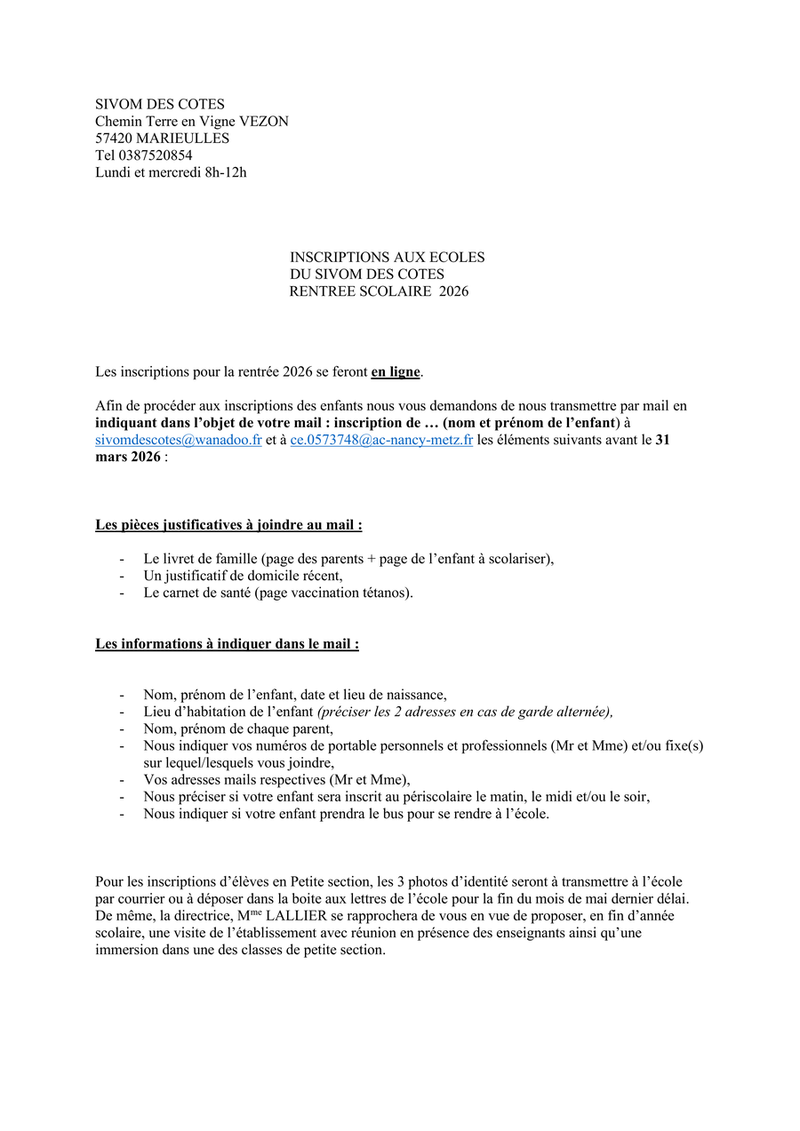 la campagne d'inscription pour la rentrée scolaire est ouverte.