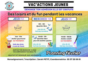 Renseignements et inscriptions auprès de Sarah PETIT au :